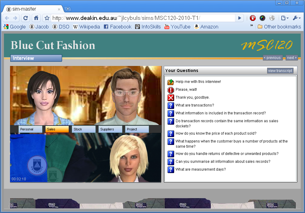 - Collaborators: Jacob Cybulski, Stephen Segrave, Graeme McNolty, David O'Brien and Peter Lane (Learning Services), Julie Cassidy (Law), Boris Crassini (Psychology), Kristin Demetrious (Communication & Creative Arts)
