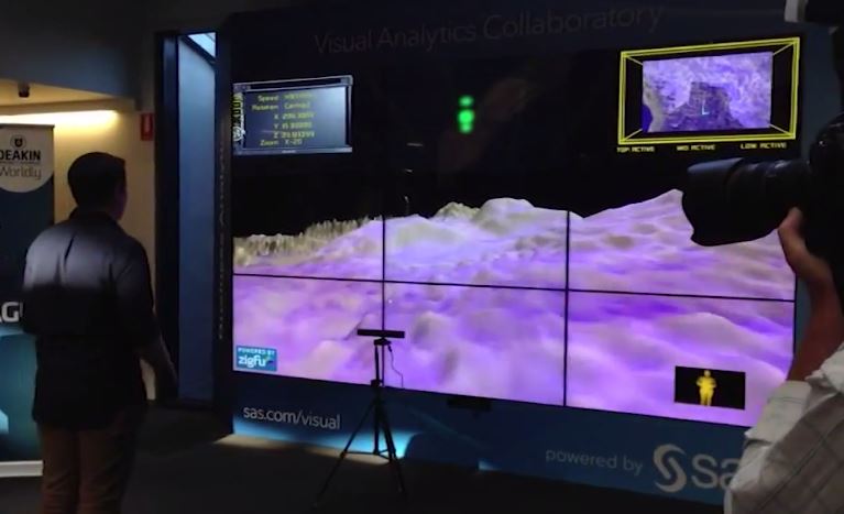 Figure. Visualisation of a 3D data terrain that can be interacted with by gestures (Click image)