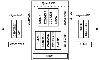 It consists of three sub-systems :- HyperEDIT, HyperBASE and HyperDICT, being the HyperCASE graphical user interface, its knowledge base and the data dictionary respectively.